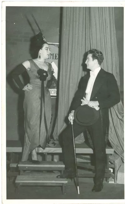 Grupo de personajes ataviados con ropa de principios del siglo XX, bai...