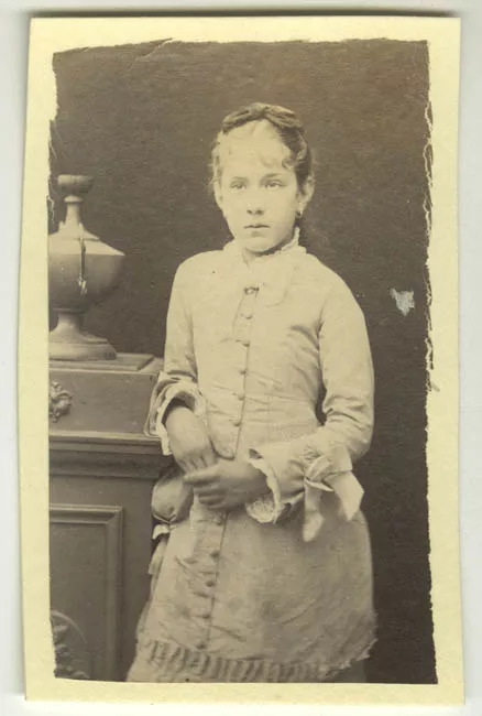 Fotografía rectangular con orientación vertical en papel monocromo de un hombre mayor de pie y en plano entero. Viste traje oscuro y apoya su brazo derecho sobre un pedestal lateral el que a su vez sostiene un sombrero de copa negro.