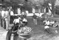 Fotografía rectangular blanco y negro sobre cartón recortado color gri...