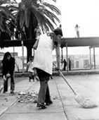 Plano largo de mujer con peinado y vestido decorado con rombos en sus ...