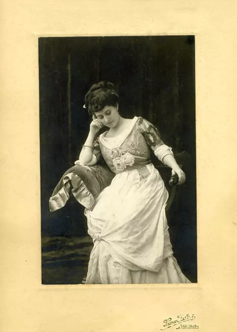 Fotografía de estudio en blanco y negro, de mujer sentada, apoyando su...