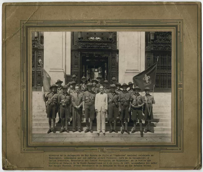 Delegación de scouts de Chile frente al Palacio de la Unión Panamericana en Estados Unidos.