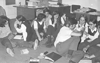 Retrato de participantes a fiesta de disfraces en Teatro Municipal de Iquique