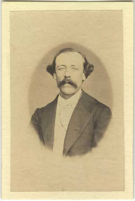 Fotografía blanco y negro. Primer plano de hombre de bigotes. Viste tr...