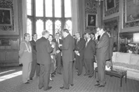 Presidente Aylwin y Presidente Mitterand, en Westminister (Parlamento), Inglaterra.