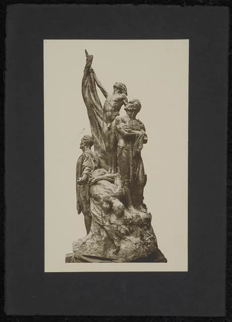 Fotografía en blanco y negro, plano general, luz natural, foco selectivo en el primer plano. Las cruces de tonos oscuros, distribuidas en desorden, destacan en relación a la alta luminosidad del lugar. Timbre en el reverso.
