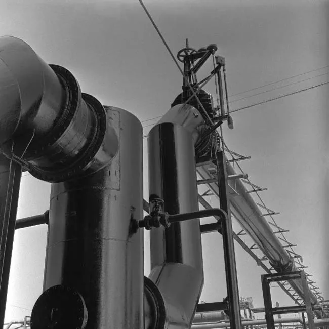 Fotografía en sepia, plano general, toma frontal, luz natural y foco parejo. La disposición del grupo y de los coches-bomba construyen una horizontal en el primer tercio del encuadre, respaldados institucionalmente por la fachada y por la construcción simétrica de las dos escalas en los balcones.