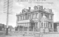 La imagen monocroma, de formato rectangular dispuesta horizontalmente, representa tres personas limpiando un terreno.