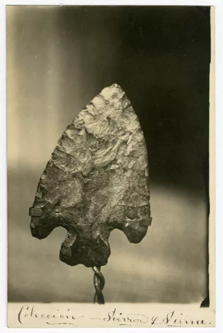 La imagen monocroma, de formato rectangular dispuesta horizontalmente, representa un grupo de personas bajo una lona.