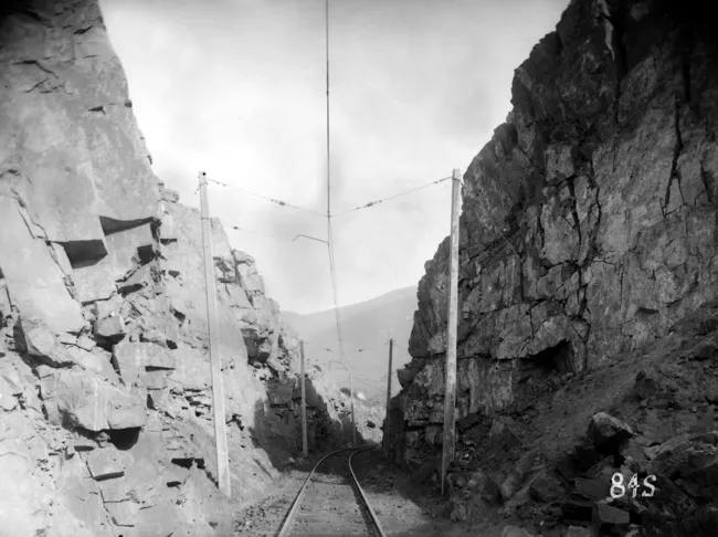 Vista a Vía Férrea Desplazada Entre Dos Cerro