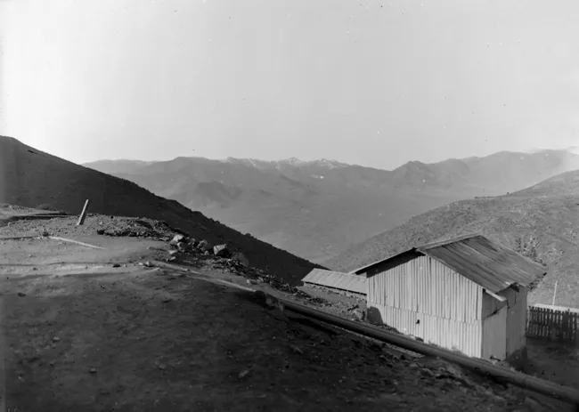 Vista de vivienda y cerros en el yacimiento El Tofo