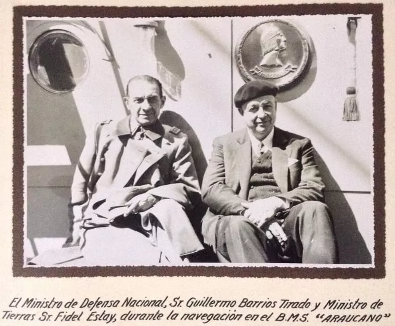 Ministros Guillermo Barrios y Fidel Estay, a bordo del BMS Araucano