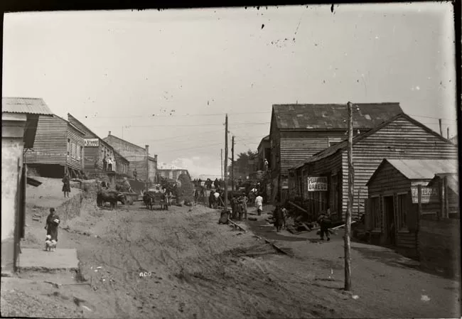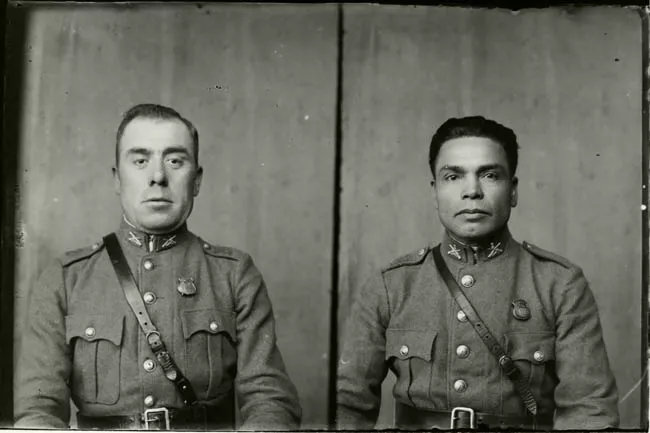 Imagen digitalizada a partir de negativo en placa de vidrio de formato rectangular y disposición horizontal. Esta placa fue usada en dos tomas distintas, dando como resultado una placa compuesta de dos imágenes de igual tamaño. De izquierda a derecha: