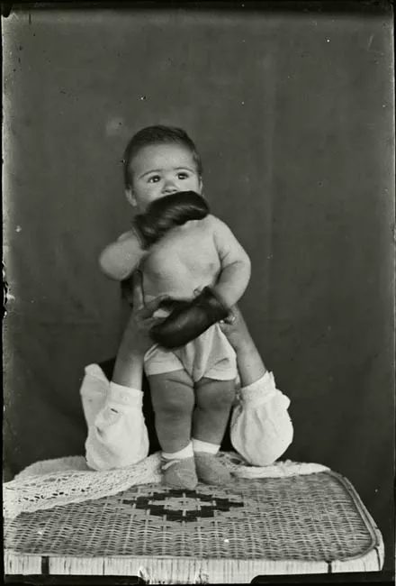 Imagen digitalizada a partir de negativo en placa de vidrio de formato rectangular y disposición horizontal. La imagen de estudio está compuesta por una figura femenina y una masculina de medio cuerpo, dispuestos en encuadre central con telón en medio tono de fondo.