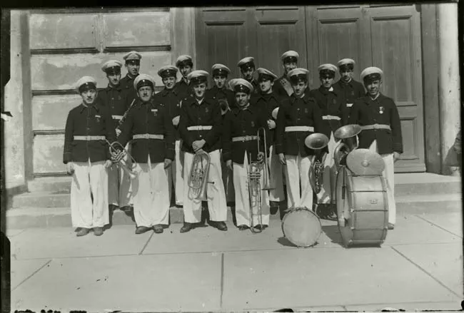 Imagen digitalizada a partir de negativo en placa de vidrio de formato rectangular y disposición vertical. La imagen está compuesta por una figura femenina de medio cuerpo y disposición frontal, dispuesta en encuadre central. El retrato femenino sedente de medio cuerpo en primer plano, dispuesta en medio perfil inclinado hacia la izquierda. Posee cabello oscuro, corto y ondulado peinado hacia atrás dejando ver su oreja izquierda con arete oscuro; mirada fija al espectador. Viste una chaqueta oscura abotonada adelante con un pañuelo claro en el bolsillo de la chaqueta y de solapa ancha, una blusa clara debajo y un collar ceñido al cuello. En segundo plano fondo telón de tonalidad media con dobleces.