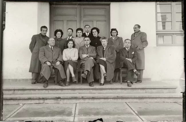 Objeto de formato rectangular y posición horizontal. Composición en base vista desde barco sobre un cuerpo de agua hacia un puerto centroamericano atlántico. El primer plano lo ocupa una parte de la proa de una embarcación de pasajeros menor, en segundo plano se ven tres embarcaciones todas de proa, de derecha a izquierda aparece una de pasajeros, una viene de frente y la de la izquierda es de vapor y va hacia el lado derecho. Atrás un lanchón o balsa. En tercer plano, muelle e instalaciones portuarias, con grúas que se perfilan contra un cielo brumoso.