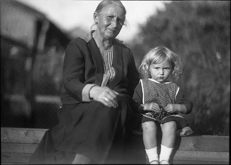 Imagen digitalizada a partir de negativo en placa de vidrio de formato rectangular y disposición vertical. Composición en base a cuerpo entero de dos figuras femeninas juveniles de pie. Están ubicadas al centro de la imagen en primer plano. De izquierda a derecha: