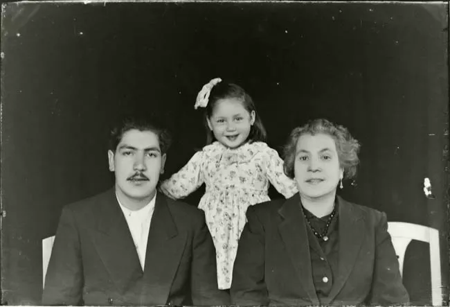 Imagen digitalizada a partir de negativo en placa de vidrio de formato rectangular y disposición vertical. Composición en base a cuerpo completo de figura femenina infantil sedente, en posición de frente, ubicada al lado derecho de la imagen en primer plano.
