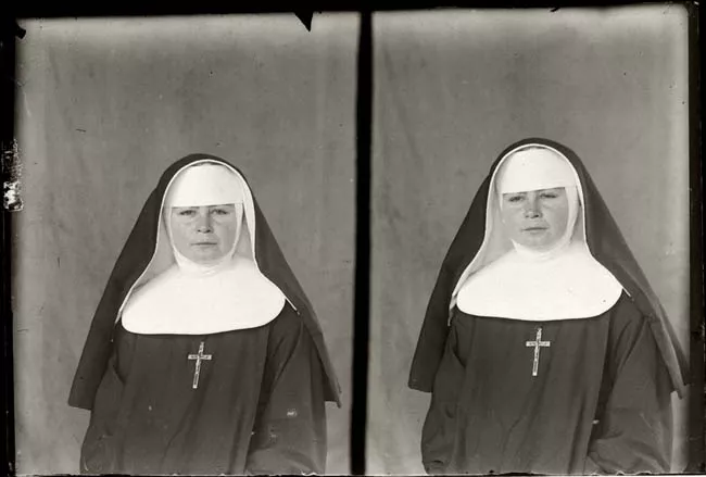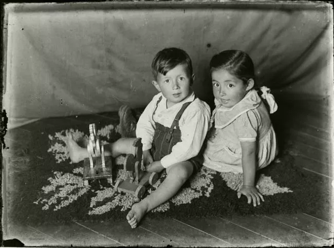 Esta fotografía presenta retoque de lápiz grafito en su emulsión, haciendo que su rostro se vea sin arrugas.