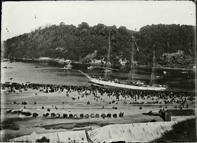 Imagen digitalizada a partir de negativo en placa de vidrio de formato rectangular y disposición vertical. Composición en base a cuerpo entero de seis figuras, dos sedentes y cuatro de pie a su alrededor. Se encuentran al centro de la imagen en dos planos. Primer plano, de izquierda a derecha:
