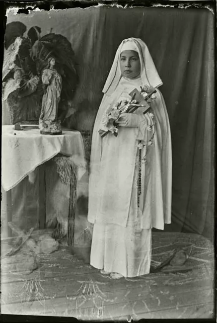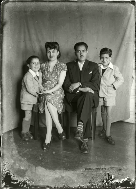 Imagen digitalizada a partir de negativo en placa de vidrio de formato rectangular y disposición vertical. Composición en base a figura masculina sedente, en posición tres cuartos hacia la izquierda. Su pierna derecha se encuentra más alta que la pierna izquierda. Su codo derecho se posa sobre su rodilla derecha y en su mano derecha sostiene un cigarrillo encendido. Tiene el cabello liso, corto y oscuro, partido hacia un lado y peinado hacia atrás. Ocupa un bigote delgado. La figura viste un traje de tono oscuro con delgadas líneas verticales en tono claro. La chaqueta se encuentra cerrada en frente con dos botones a la vista. Bajo esta. Una camisa de tono claro y una corbata de tono medio con patrones circulares en tono claro. En el puño de la manga de la camisa se observa un botón blanco. En la solapa izquierda de la chaqueta se observa un objeto brillante sobresaliendo del bolsillo. En el fondo un telón liso.