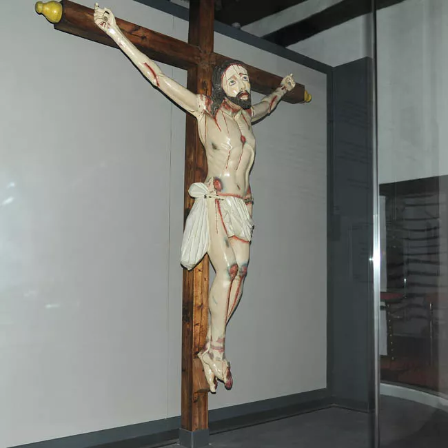 Crucifijo de madera tallada y policromada. Compuesto por escultura de ...