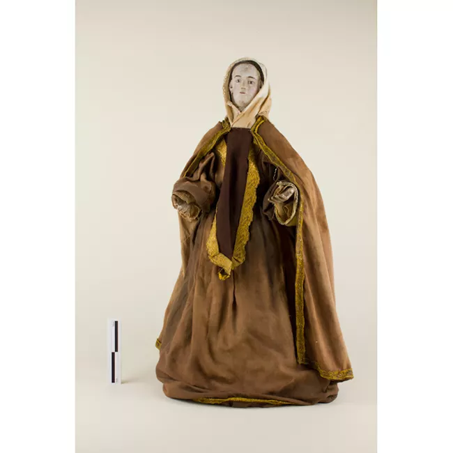 Contenedor ovalado a doble cara, con marco de metal y borde en blondas...
