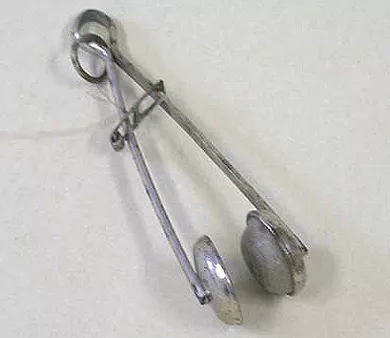 Levantador de falda, de metal plateado, con forma de pinza, llevando e...