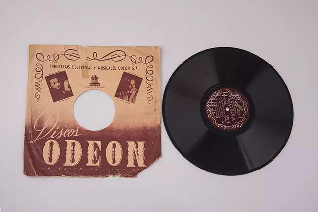 Objeto de uso domestico. Disco de vinilo de color negro con una etique...
