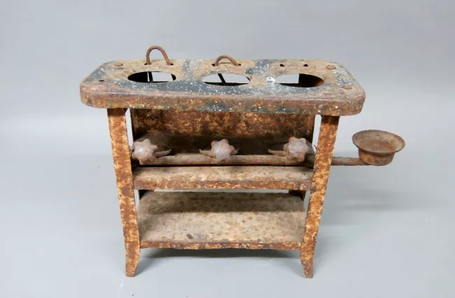 Objeto de uso recreativo, juguete de cocina de latón blanca pintada co...