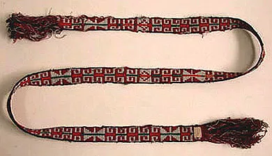 Faja Mapuche de lana, en faz de urdimbre con trama circular con diseño...
