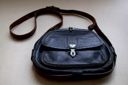 Cartera de cobradora de cuero negro, con bolsillo exterior con aldaba ...