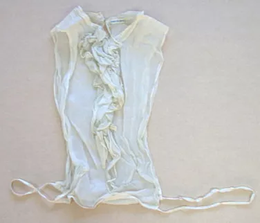 Prenda de dormir de material sintético rosado, talle largo, manga larga. Tiene cuello y bajo éste una abertura cerrada cn 9 botones del mismo material. Los puños tienen abertura cerrada con cinco botones. Bordeando el cuello, abertura del delantero y puños lleva un vuelo de encaje crema. En el delantero, en los hombros lleva alforzas. El hombro de la manga va recogido. El puño se forma por otra pieza unida a la manga, que queda recogida en esta zona.