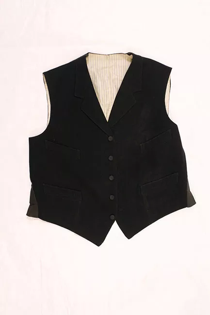 Chaleco de hombre de tricotina de lana negra, corto, entallado, con so...