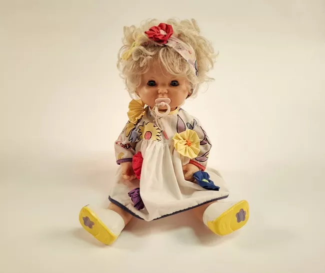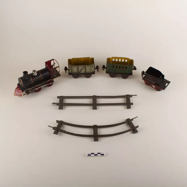 Objeto de uso recreativo, juguete de un arma de fuego, un revolver de plástico negro y blanco.Se compone por una estructura cilíndrica negra dispuesta horizontalmente, en la parte central posee seis orificios circulares; tiene un mango con formas en relieve en plástico blanco. Se acompaña por un cinturón negro con trece balas blancas y dieciocho espacios y un estuche para guardar el revolver. Se encuentra sobre un cartón impreso con letras en la parte superior y el extremo inferior derecho, a la izquierda una figura masculina de medio cuerpo y dispuesto frontalmente, viste un sombrero, camisa, chaleco, y en su mano izquierda un arma de fuego.
