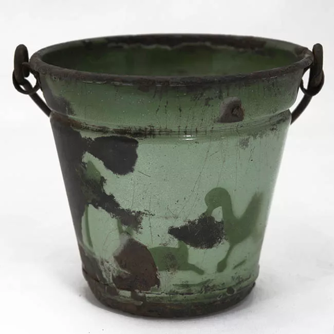 Recipiente pequeño de greda color rojizo. Tiene cuerpo cóncavo y un pe...