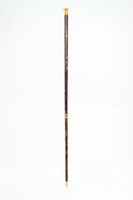 Terno masculino con suspensores y corbata. El traje está elaborado en lana negra con líneas blancas y grises. Tiene un chaleco sin mangas simple, con 6 botones, y una corbata con diseño diagonal, los suspensores de botón con elástico azul con diseño a cuadros.