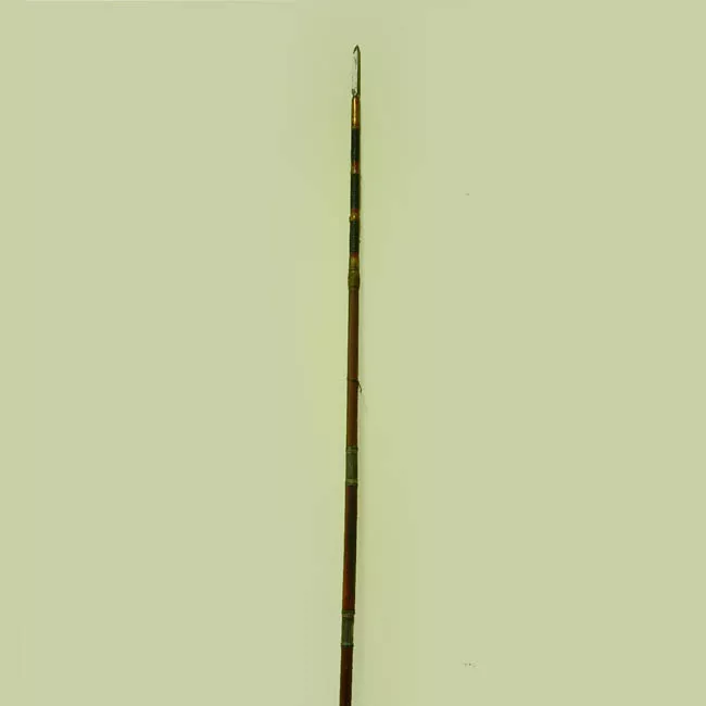 Arma de fuego larga de madera, de grueso calibre, con sistema de pedernal. Cañón cilíndrico de ánima lisa. Presenta una perforación en la caja de madera para ajuste.