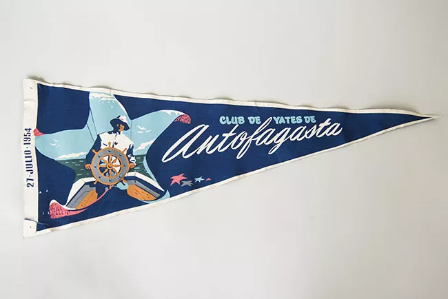 Objeto con forma triangular y plano con borde blanco y fondo azul colo...