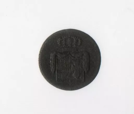 Objeto de conmemoración, es una medalla circular de bronce dorado. El ...