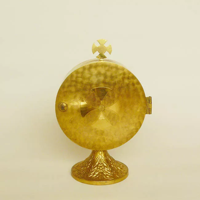 Figura infantil de bulto y talla completa, desnudo en posición yacente, lleva el cabello dorado rizado. Brazo derecho flectado apoyado en una almohada blanca, el brazo izquierdo doblado hacia adelante con la mano abierta. Piernas juntas rematan en pies descalzos. La figura lleva un vestido de color celeste con bordados de color blanco, del cuello pende un collar con esferas nacaradas y un medallón dorado. La figura reposa sobre una estructura de forma ovalada forrada con tela blanca con bordados dorados con motivos florales. De la base emergen dos estructuras que forma un arco elaborados con hilos metálicos decorados con hojas, flores y frutas a modo de guirnaldas. El conjunto de apoya sobre una base de forma ovalada con cuatro patas de madera barnizada, en cuya parte frontal lleva trabajo en marquetería y está cubierto por una cúpula de vidrio, liso y transparente de forma cóncava que en la parte inferior presenta una abertura que se ajusta al calado de la base.