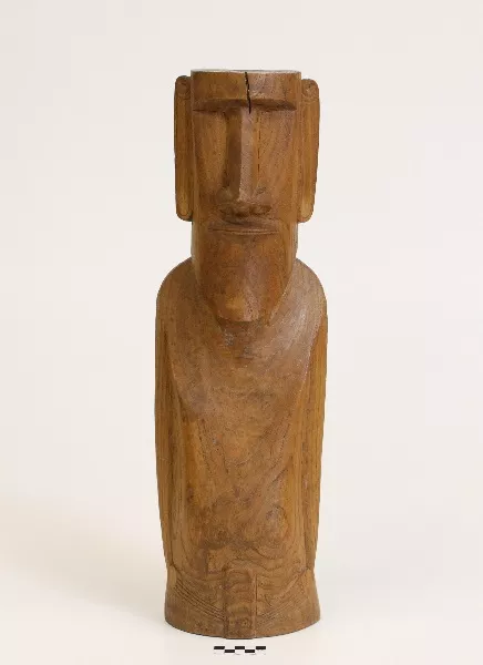 Figura antropomorfa tallada en madera. De cuerpo esquematizado, con lo...