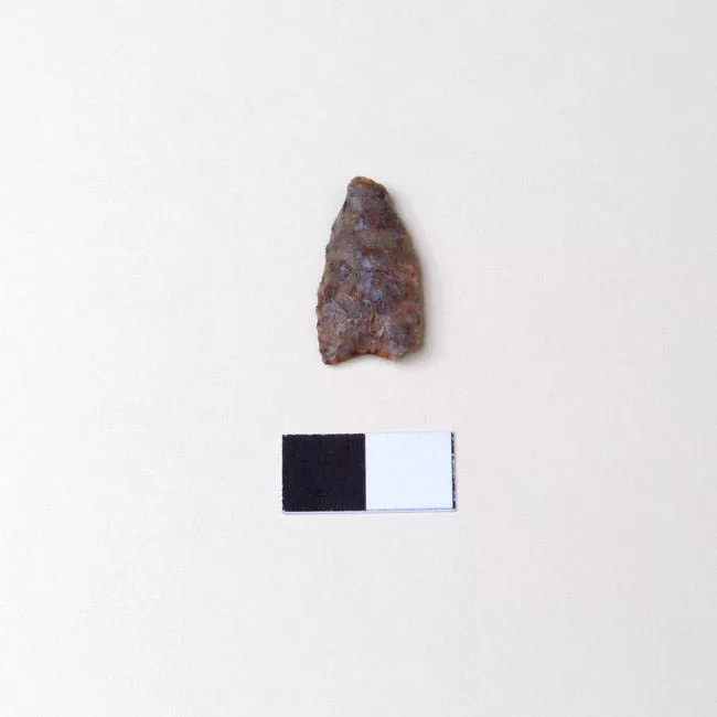 Lítica entera, forma triangular con base escotada, lados curvos, vérti...