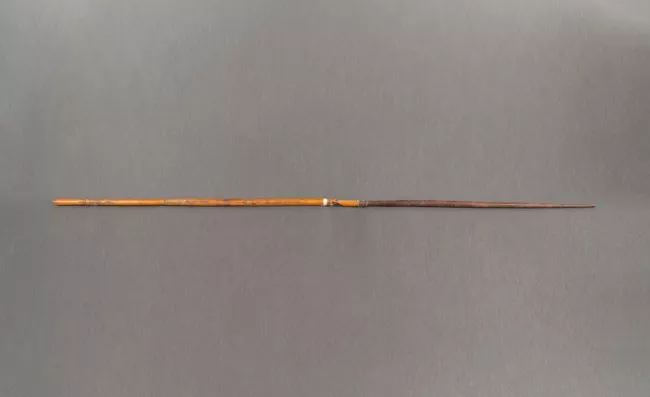 Punta de proyectil de obsidiana elaborada mediante talla bifacial. Pre...