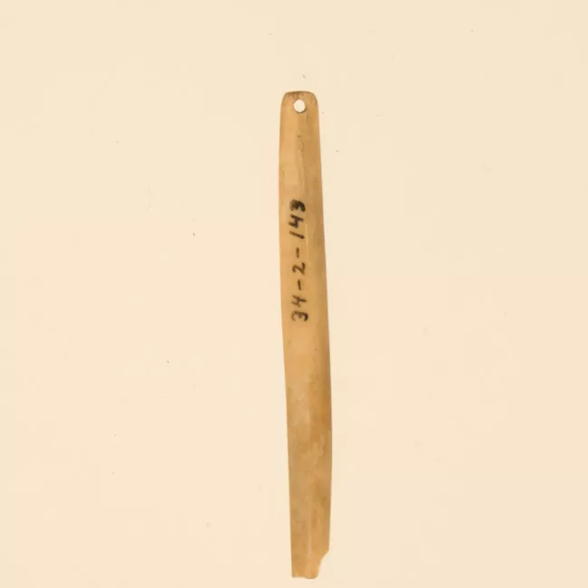 Fragmento de aguja de hueso correspondiente al extremo por donde se pa...