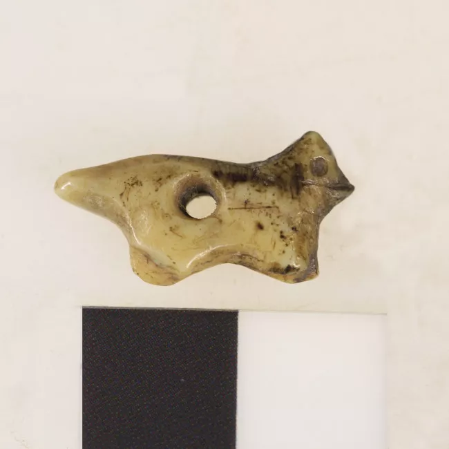 Piezas pequeñas de lutita, de color negro y gris oscuro. Una es de forma discoidal, otra es octogonal y dos tienen forma octogonal-discoidal. Todas tiene una horadación central.