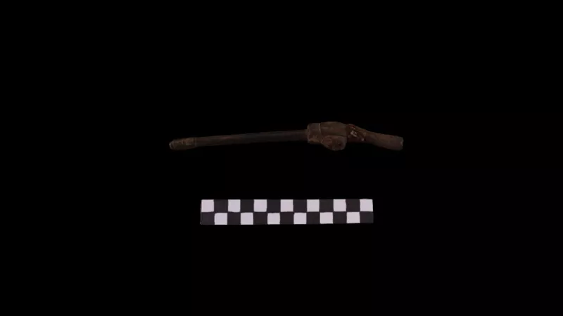 Objeto de uso ceremonial. Está compuesto por una vara de sección circu...