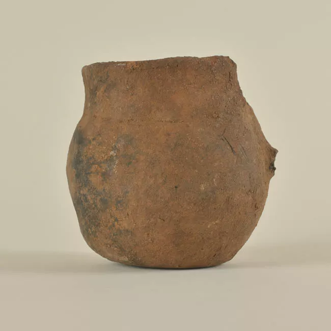 Vasija asimétrica, restringida con cuello, complejo. Superficie exterior aparentemente engobada y pulida, con diseños en negativo; superficie interior alisada, excepto borde y e inicio cuello. Borde directo evertido con labio convexo, cuello semihiperboloide, cuerpo subovoidal horizontal, base plana, asa vertical en arco de correa emplazada cuello-cuerpo. En el ancho máximo del cuerpo, se aprecia un protúbero semejando una cola y otros dos emplazados lateralmente a modo de alas; en el cuello se registra un rostro zoomorfo.