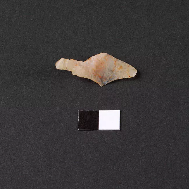 Objeto de forma triangular, base plana y punta fragmentada. Talla bifa...