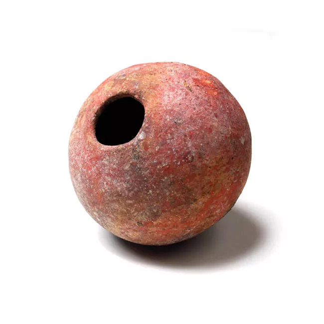 Vasija simétrica, restringida con cuello, de perfil complejo. El borde es directo con labio convexo, cuello subcilíndrico, cuerpo ovoidal, base convexa y un asa vertical emplazada labio-cuerpo. Ambas superficies están alisadas.